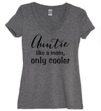 Auntie Like A Mom, Only Cooler Women's Heather Gray VNeck Shirt