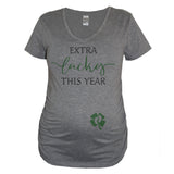 • Heather Gray "Extra Lucky This Year" Maternity V Neck With Clover And Baby Feet - It's Your Day Clothing