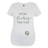 • White "Extra Lucky This Year" Maternity V Neck With Clover And Baby Feet - It's Your Day Clothing