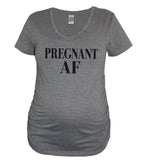 Are you more than just a little pregnant? Let everyone know with this heather gray women's very soft and comfortable maternity style fitted v-neck tee with ruched sides and "Pregnant AF" print in black. Great for pregnancy announcements!