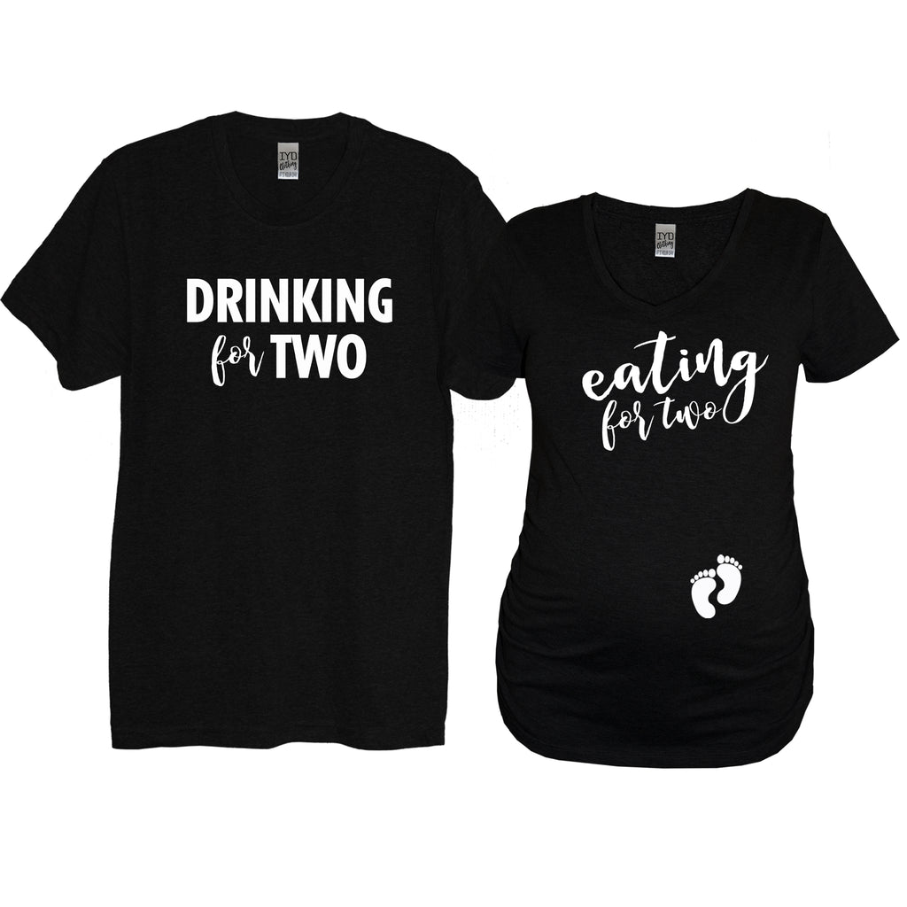 Black Eating For Two And Drinking For Two Couples Pregnancy Announcement Maternity Shirts