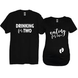 Black Eating For Two And Drinking For Two Couples Maternity Shirts