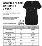 A black gray women's very soft and comfortable Maternity v-neck and a men's crewneck with a white print.