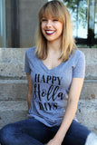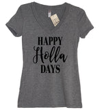Happy Holla Days Women's V Neck Heather Gray Shirt