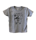 Cute little shirt for the holidays! Gray toddler or kids shirt with black "It's cold outside alpaca my scarf" print.