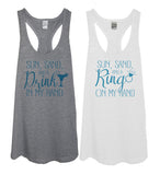 Sun, Sand, And A Ring On My Hand/Drink In My Hand Bachelorette Party Tank Top