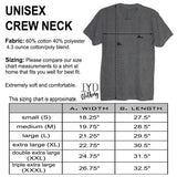 Printed on 50% polyester/25% ring-spun combed cotton/25% rayon, 32 singles, 4.3 ounce tri-blend men's v neck or 60% ring-spun cotton/ 40% polyester on the men's crew neck.